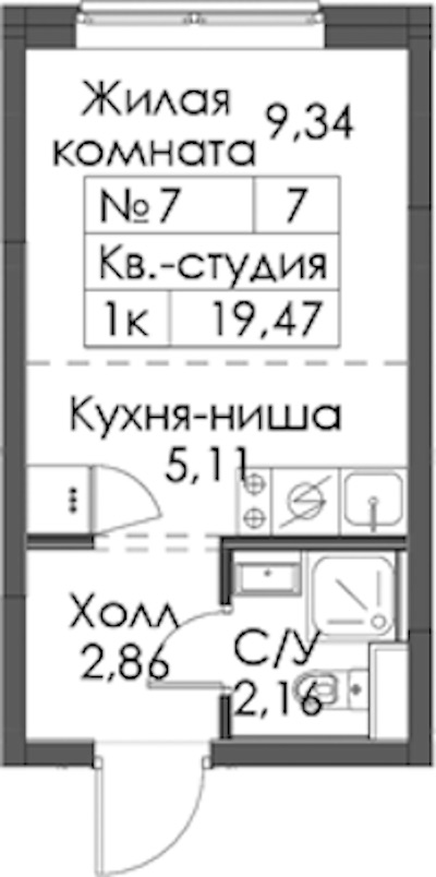 Квартира-студия на 1-ом этаже 19,47 кв.м