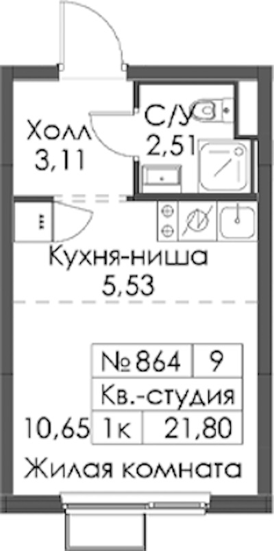 • Площадь21,8 м2