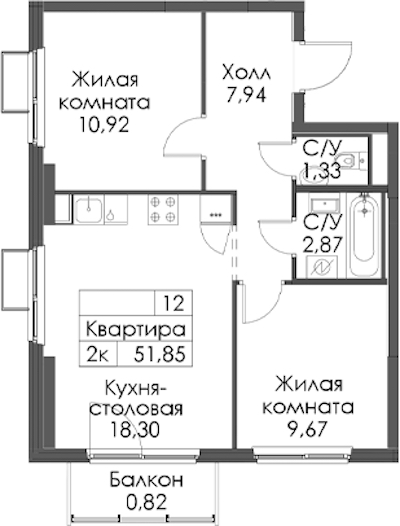 - Площадь51,85 м2
