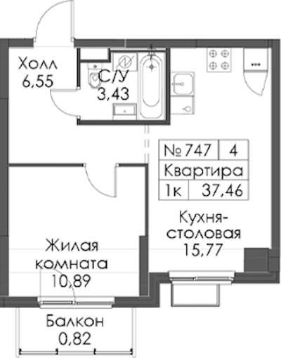 Однокомнатная квартира на 5-ом этаже 37,46 кв.м