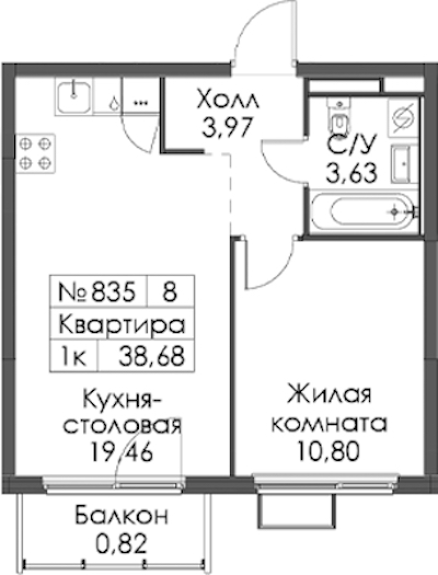 • Площадь38,68 м2