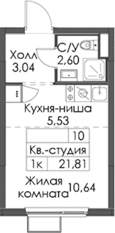 Квартира-студия на 6-ом этаже 21,81 кв.м