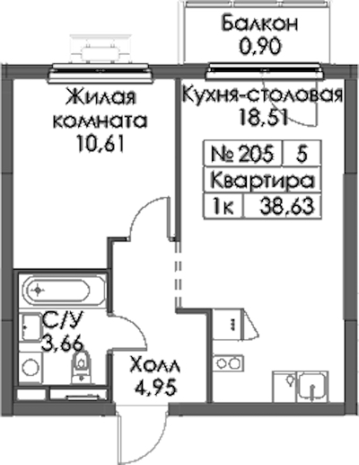 - Площадь38,63 м2