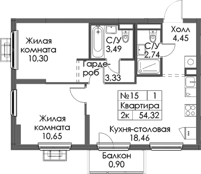 • Площадь54,32 м2