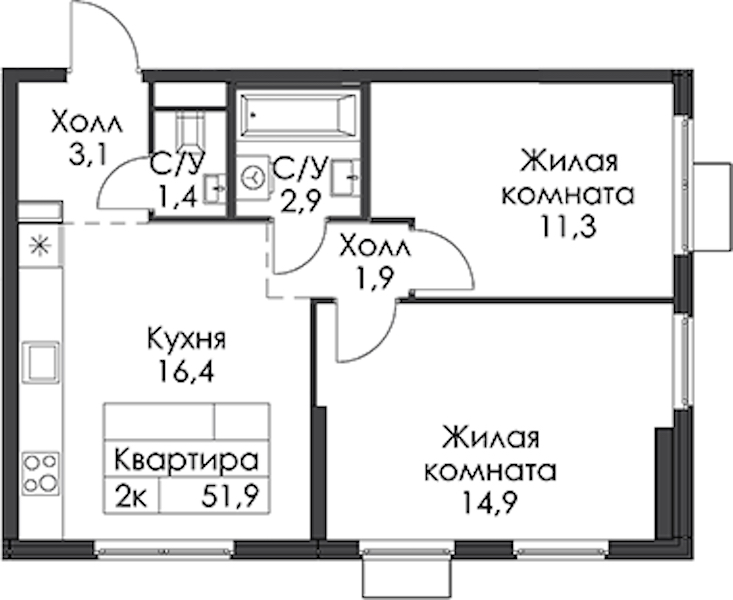 Выше представлены не все варианты квартир, а только часть популярных планировок. Введите данные и получите под ваш запрос планировки, цены, виды из окон и полную информацию по всем подходящим вариантам. 1/5